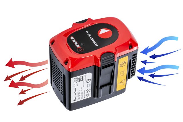 ゼノア バッテリーブロワは非常に軽量でバランスがよく、プロが満足する大風量で、効率的に清掃が行えます。エアインテーク(空気の取り入れ口)が左右にあるので、片方が塞がっても、反対側から十分に空気を取り入れることができます。